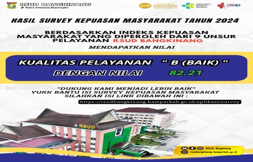 RSUD Bangkinang berhasil meraih nilai 82,21 dalam Survei Kepuasan Masyarakat Tahun 2024, yang termasuk dalam kategori “Baik”. Survei ini dilakukan untuk mengukur kualitas pelayanan publik berdasarkan 9 indikator utama, seperti prosedur pelayanan, perilaku petugas, dan fasilitas.